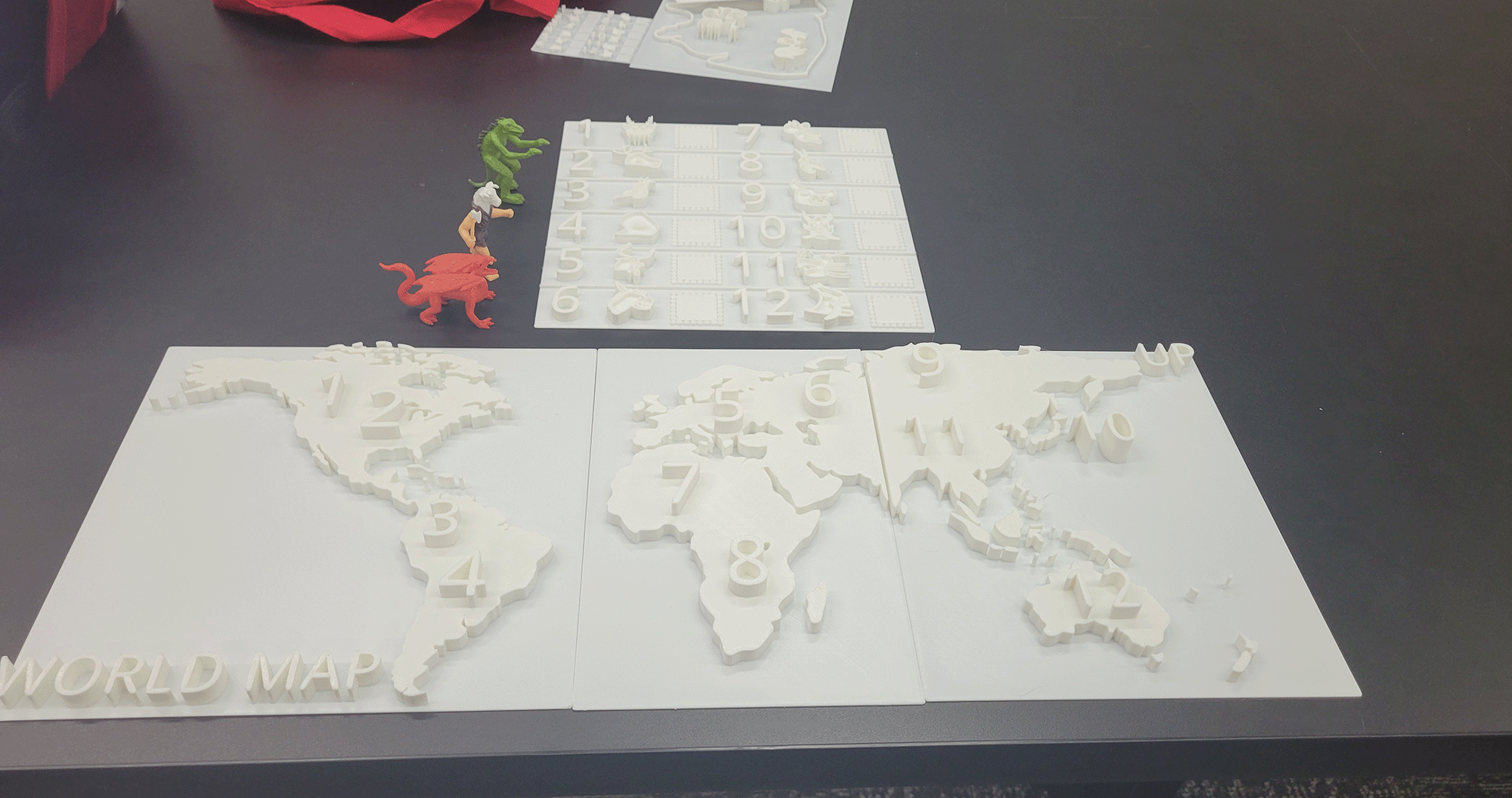 This project is a prototype for a tactile map that helps teach visually impaired people about world mythology.The map is a map of the world that has embossed numbers, and a corresponding key with a number, icon, and QR code. For the future, I would also like to include 3D models that a user can feel. In their place, I used figures that I had of a few mythological creatures.
