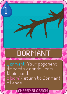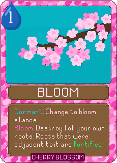 The other plant you can play as is the Cherry Blossom. The cherry blossom can swap between either the dormant stance or the bloom stance. The cherry blossom has cards with different effects based on what stance they are in.