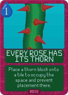 One of the plants you can play as is the Rose. The rose can place down thorns that block a tile, and then can trigger those thorns to destroy opposing roots.